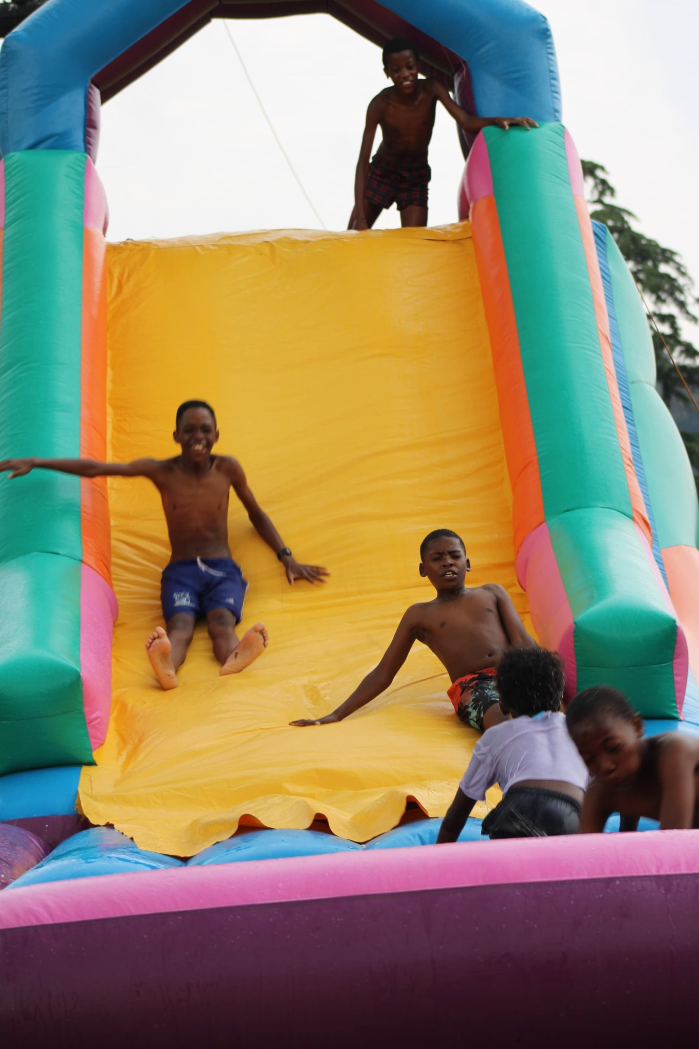Beyond the courts, the scholars had tremendous fun cooling off on the inflatable water slide before enjoying well-deserved treats — chips, cold drinks, and fresh doughnuts! 🍩💦